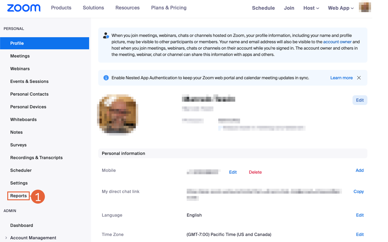 Select Usage Reports (2) from the available options, and then Meeting and Webinar History (3)